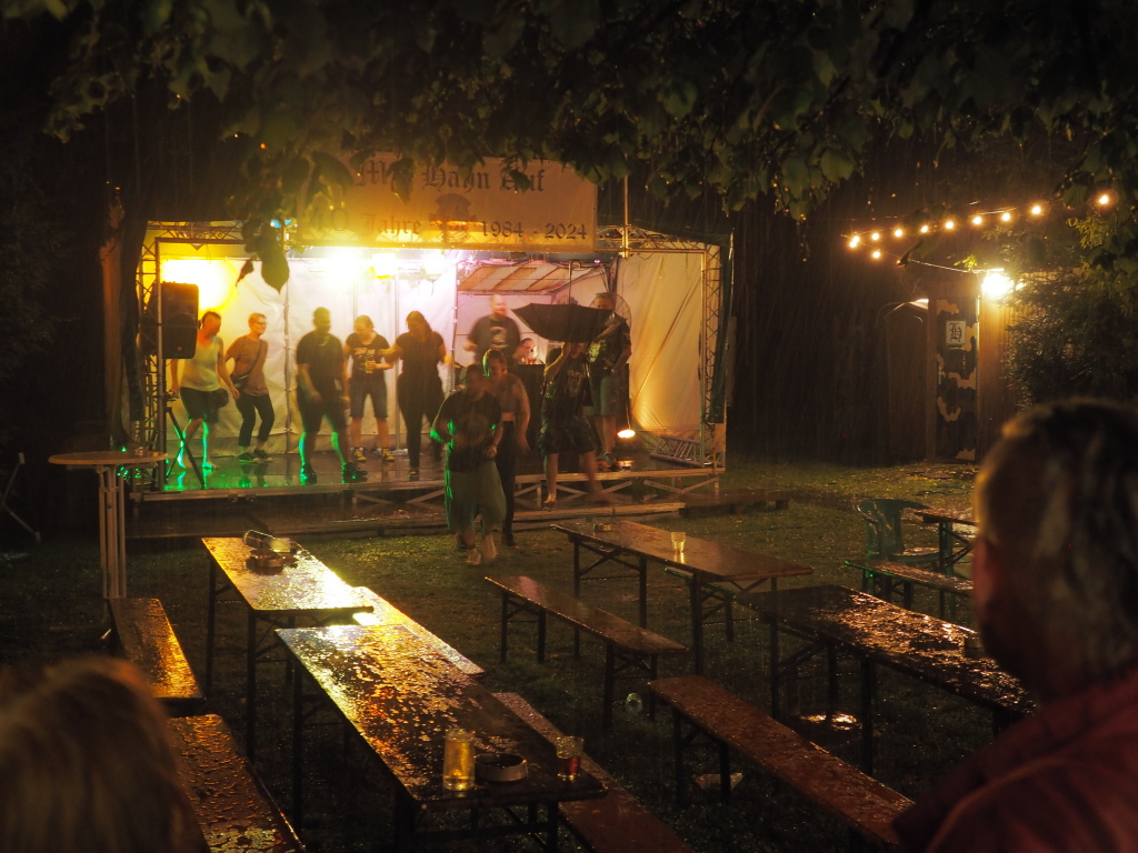 Und hier noch die Band, die die sehr gut ankam und eine spitze Auswahl an Titeln hatte. Aber es war schon sehr dunkel, aber der Spaß war noch da.